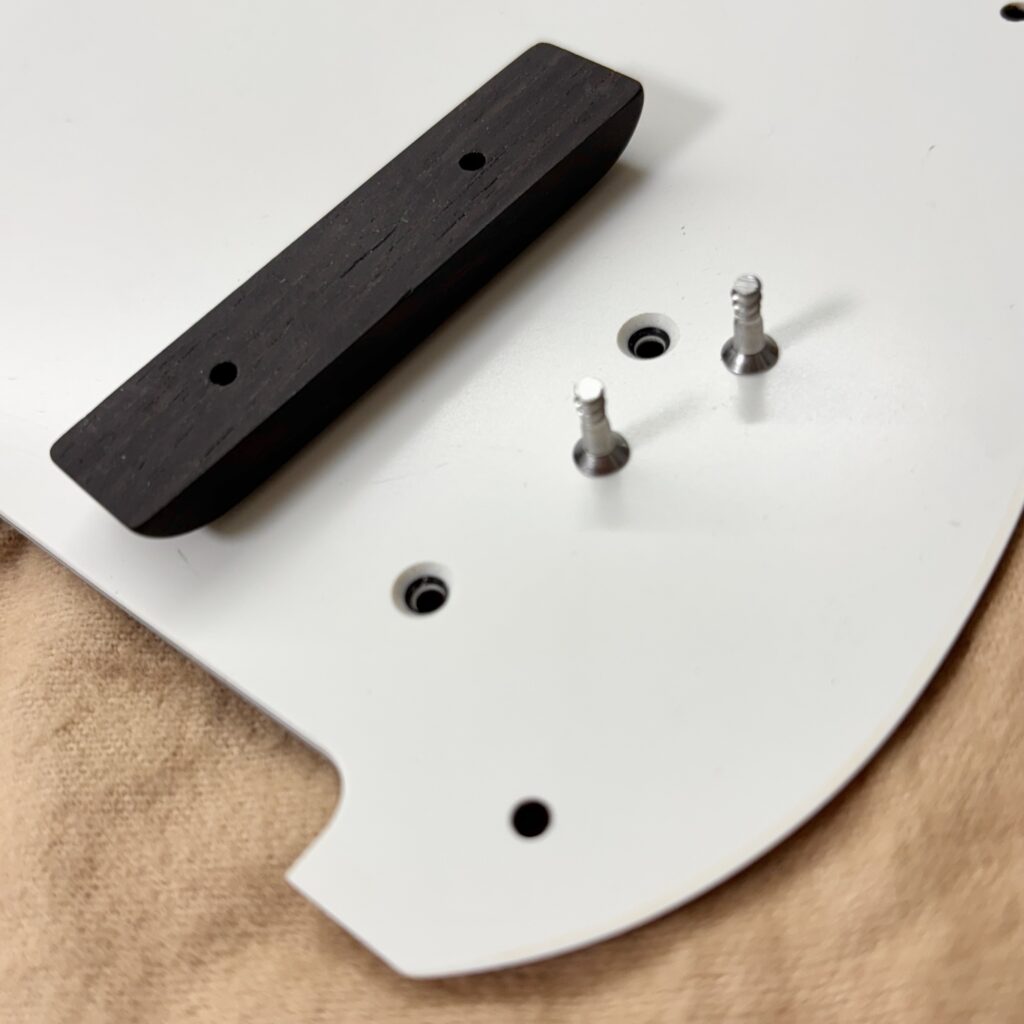 指置きをピックガードの裏からネジ止めします。