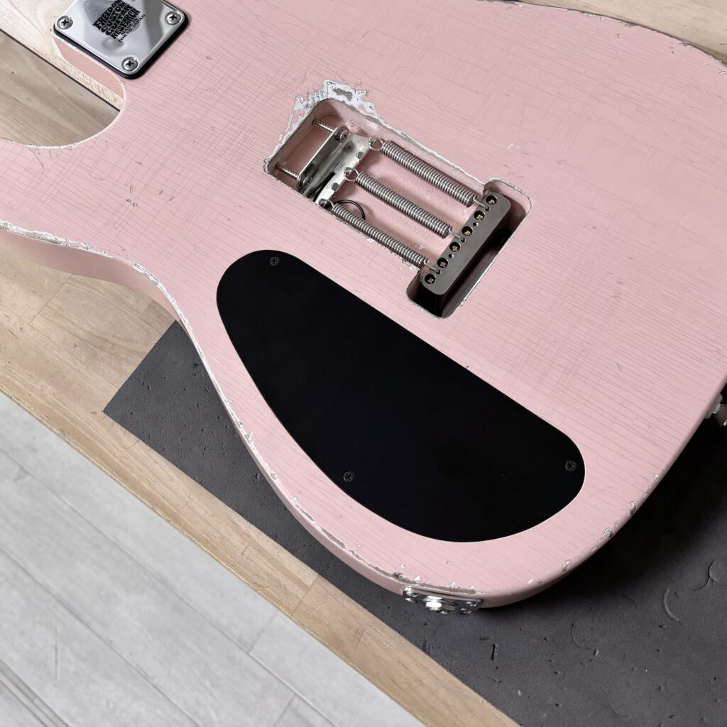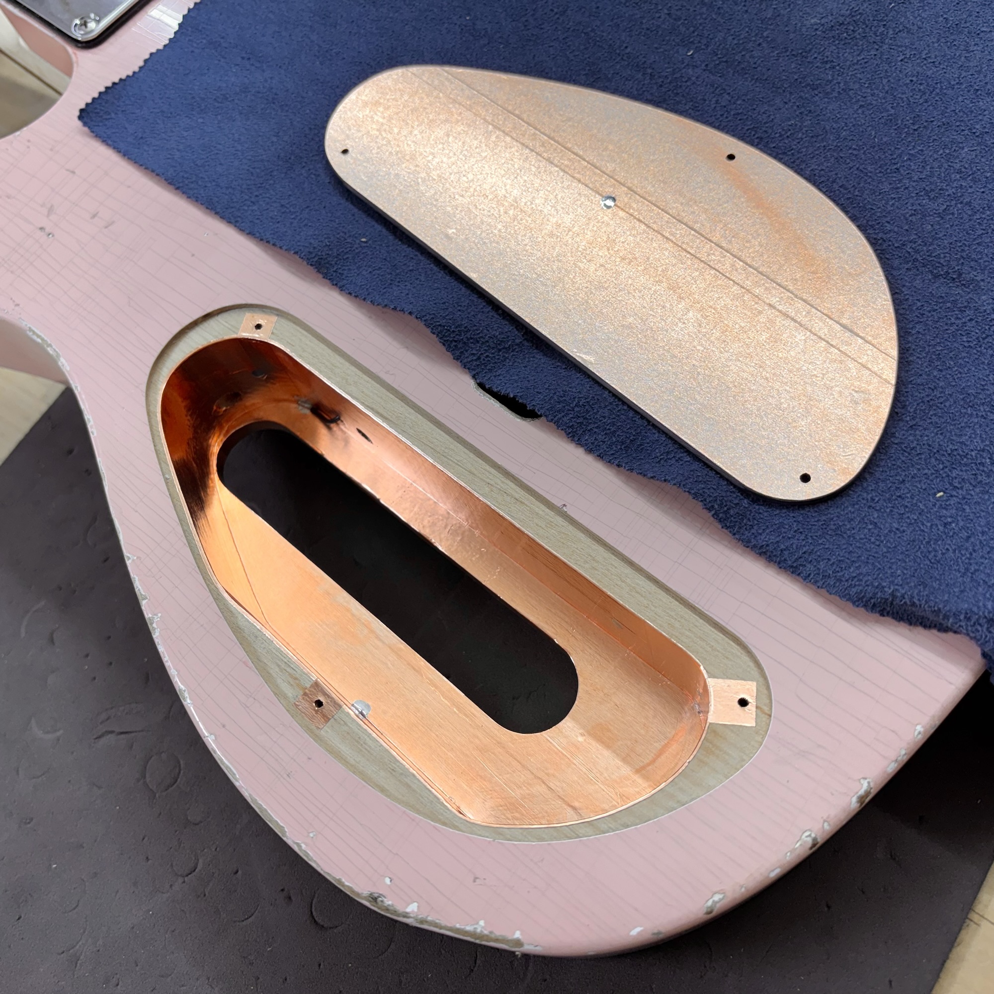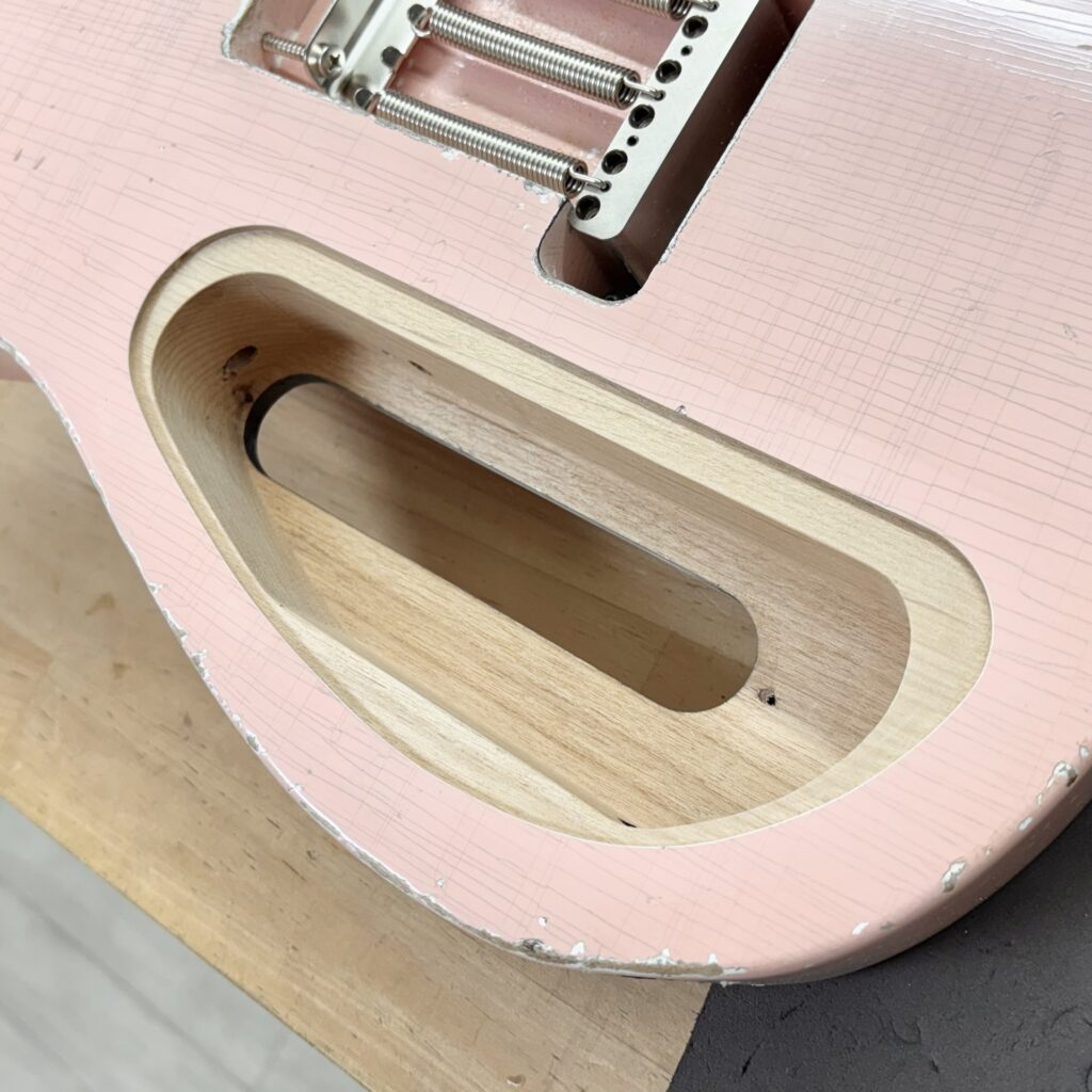 テレキャスタータイプのコントロールキャビティを拡張しました。裏から広く掘って裏蓋をつけます。