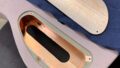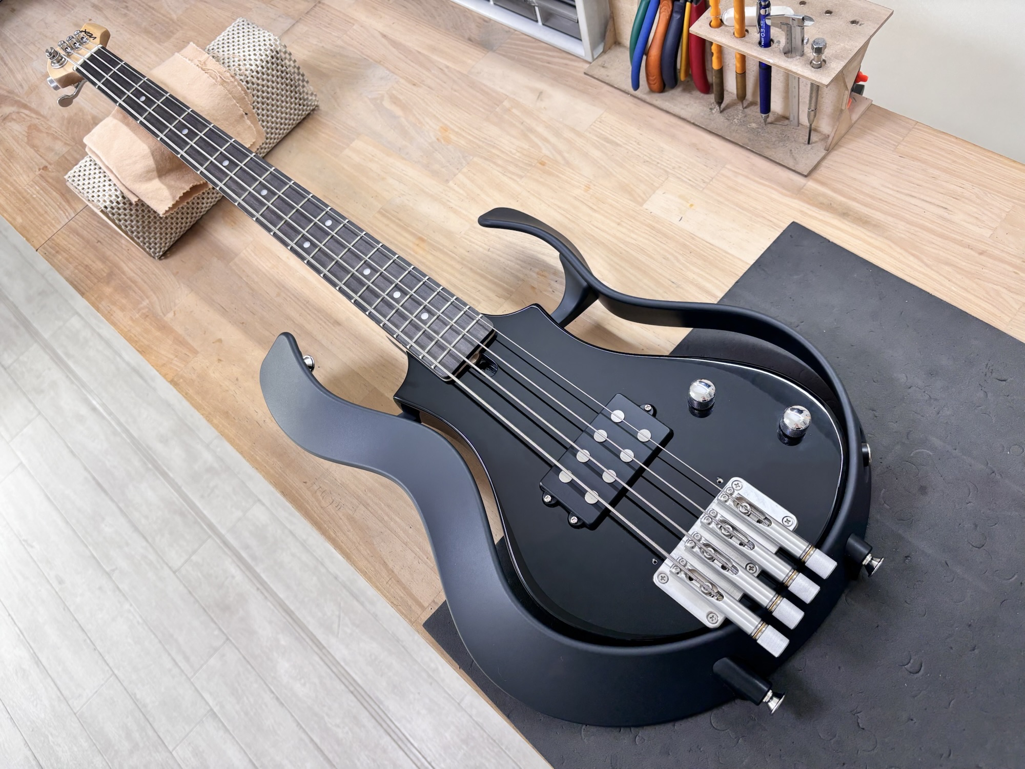 ブリッジはNova Guitar Parts製を取り付けました。ボディフレームの形状のおかげで大きな加工は不要でした。またストラップピンも最初からヘッドレスブリッジを取り付けるうえで大変都合が良い位置にあります。
